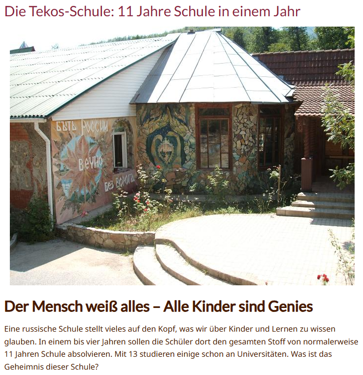 Eine alternative Lernmethode wird an der Tekos-Schule in Krasnodar am Schwarzen Meer (Russland) erprobt. – Ein Bericht auf https://bewusst-vegan-froh.de